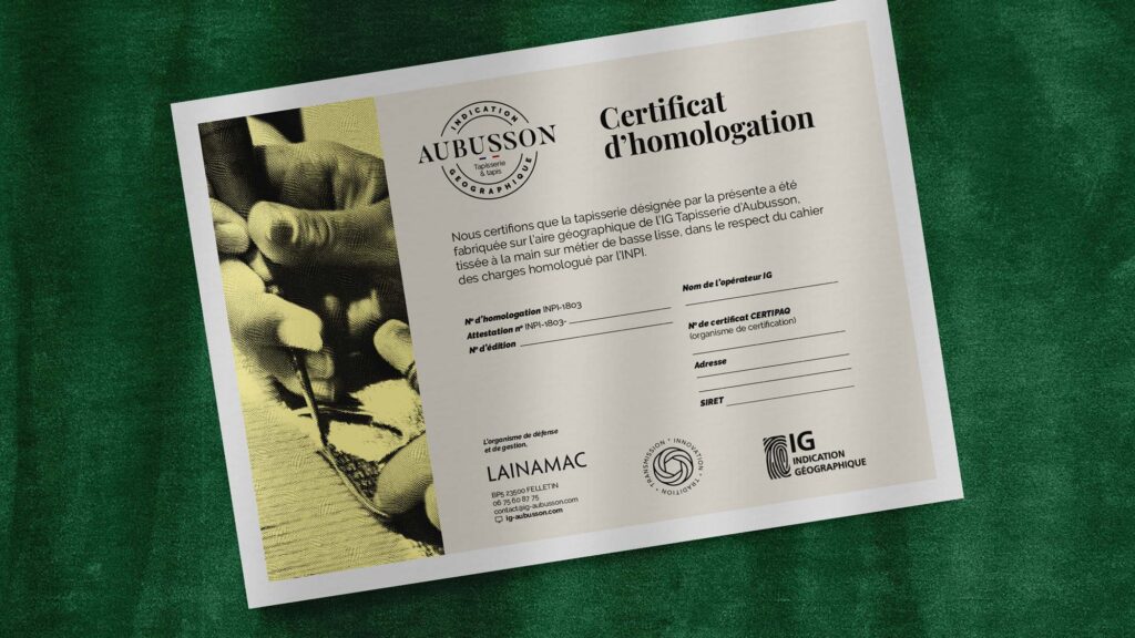 - mention IG Tapis d’Aubusson / IG Tapisserie d’Aubusson ;
